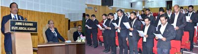 SRINAGAR, Sept 19: State Judicial Academy today organized oath ceremony for newly enrolled 105 Advocates of Kashmir province at State Judicial Academy (SJA) here.