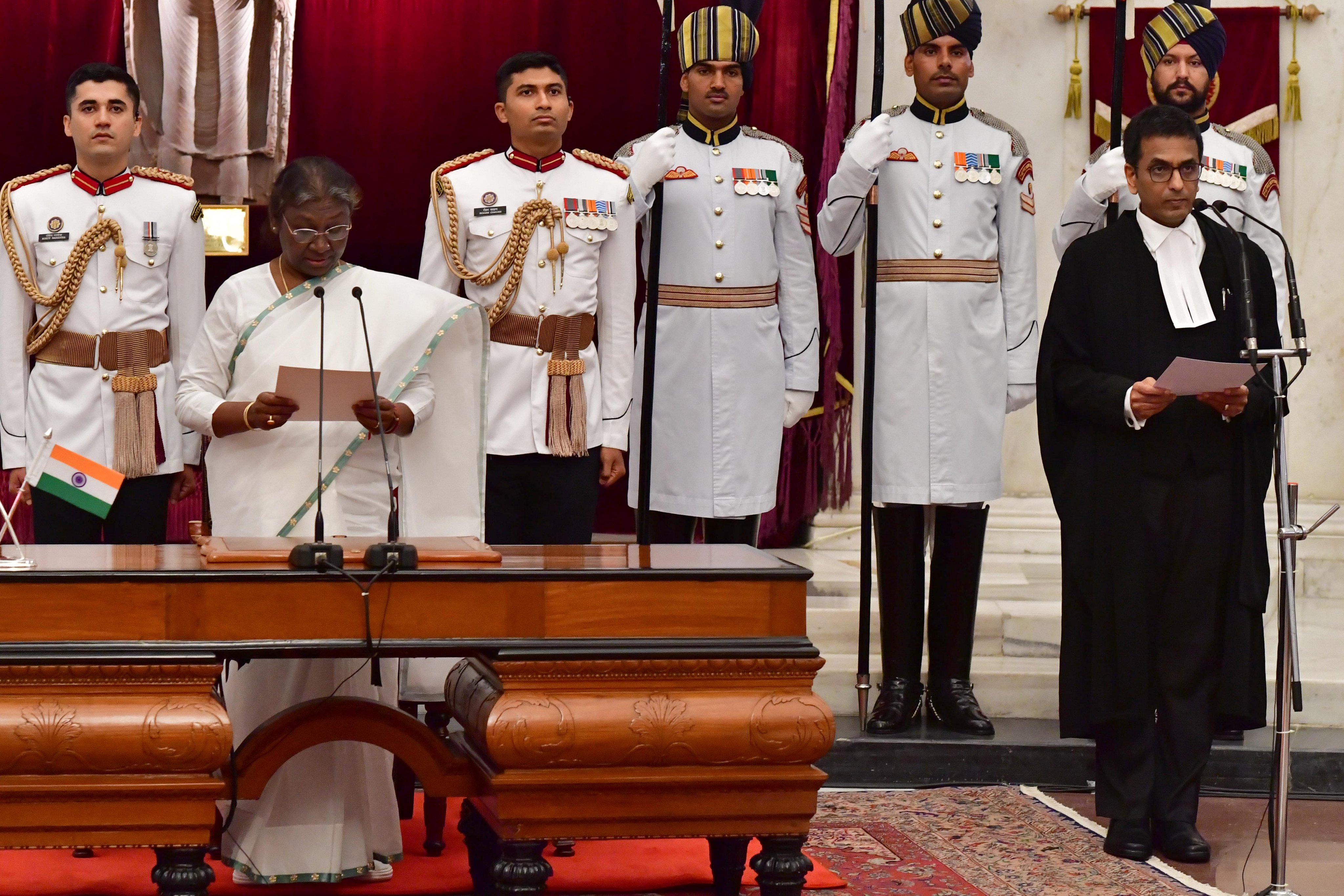President Droupadi Murmu administered the oath of office of the CJI to Justice Chandrachud at the Rashtrapati Bhavan.