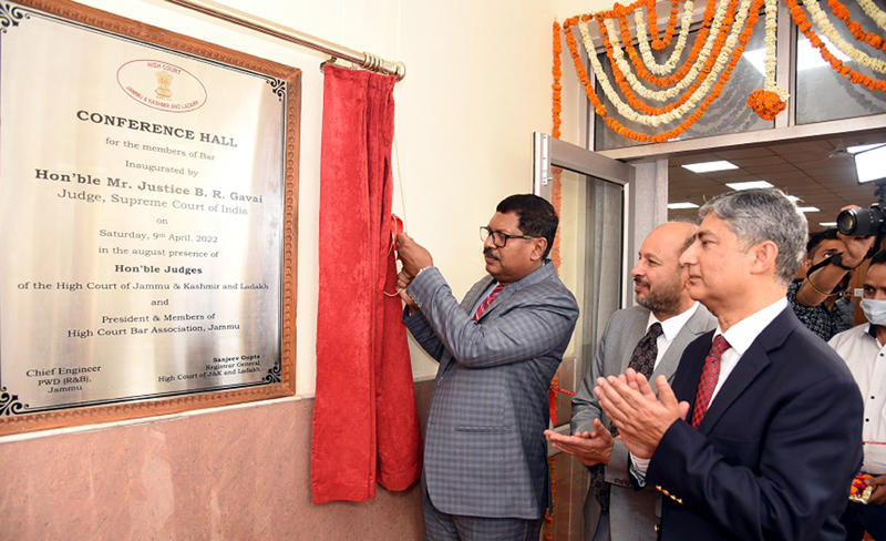 JAMMU, Apr 9: Justice B R Gavai, Judge, Supreme Court of India, today inaugurated AIR Café, e-Library and conference hall for Lawyers at lawyers’ Chambers Building, Court Complex here.