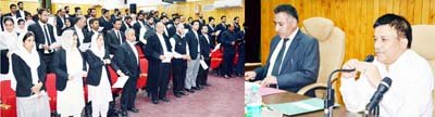Proceedings were conducted by Abdul Rashid Malik, Director Judicial Academy. He deliberated on the need for oath ceremony and lecture on professional ethics and conduct for the Advocates.
