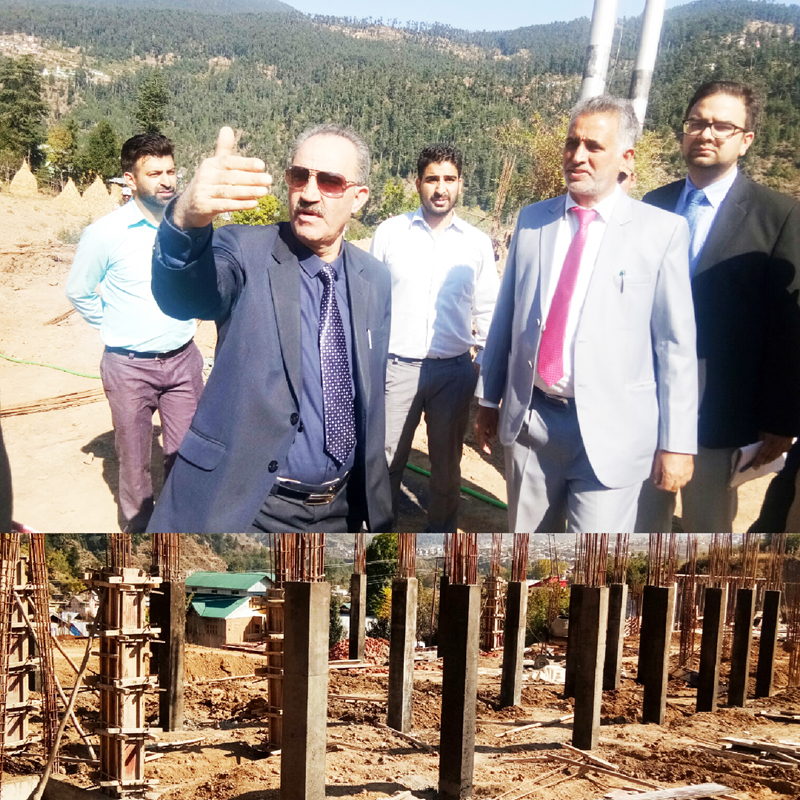 Justice Ali Mohammad Magray inspecting construction work of District Court Complex on Monday.