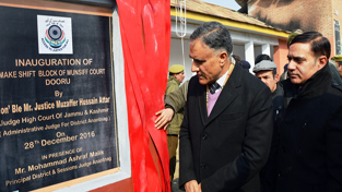 Justice Muzaffar Hussain Attar inaugurating block of Munsiff Court Dooru on Wednesday.