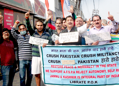 JWAM activists raising slogans during protest at Jammu on Sunday.