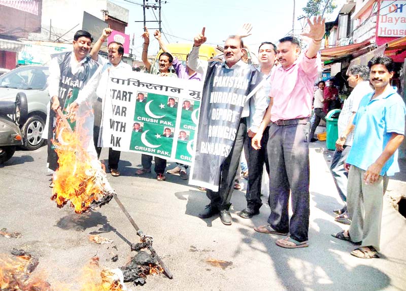 The activists of JWAM led by its President Sunil Dimple assembled here today and held protest against holding of talks with Hurriyat leaders viz Pakistan.