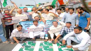 Leading the protesting activists, who burnt the effigies of Pakistan PM, Nawaz Sharief and PDP-BJP Government in the State besides Pakistan flags, JWAM president, Sunil Dimple, said that people of border areas in J&K as well as our Jawans are being killed in ceasefire violations by Pakistan, standing paddy crops and houses are being destroyed and cattle killed in mortar shelling.
