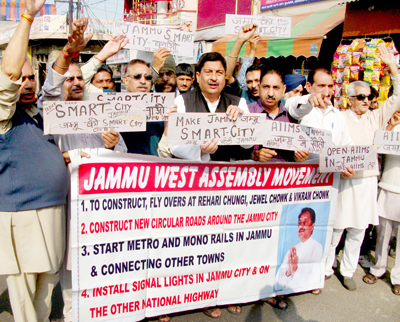 Addressing the protesters JWAM president Sunil Dimple demanded the visiting Prime Minister Narendra Modi to visit the State with the official orders for AIIMS in Jammu and to make it a “smart city”.