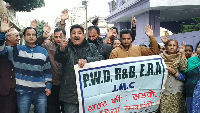 The residents including men, women and children accompanied by JWAM President Sunil Dimple held protest and raised slogans against ERA and JMC authorities.