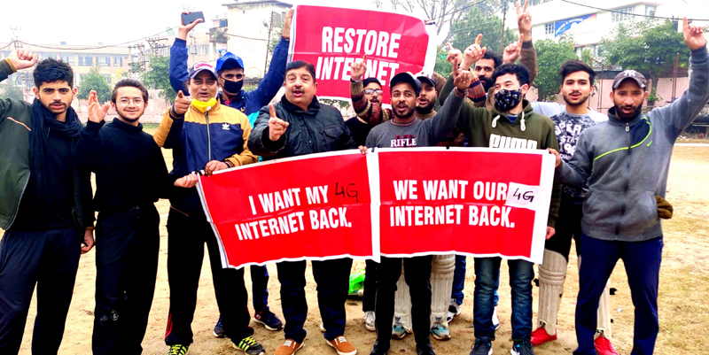 JAMMU, Jan 9: Activists of Jammu West Assembly Movement (JWAM) here today staged a protest demonstration along with students demanding start of 4G internet services in J&K.