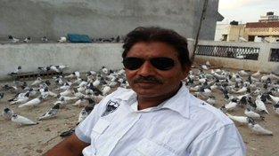 Kaala Kabootarbaaz alongwith his pigeons after victory in pigeon contest in Jammu on Monday.