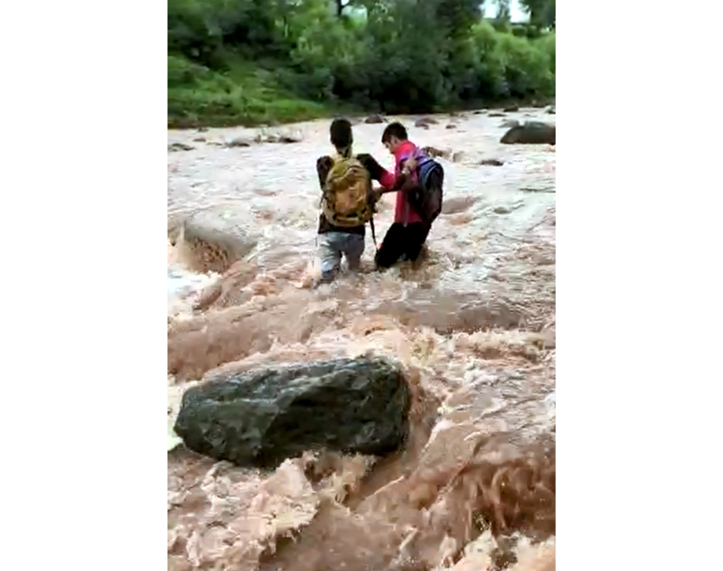 The villagers and their school going children often risk their lives while crossing this nallah and specially when it is flooded or semi-flooded. The school going children many times remain stranded on the either side for hours during rainy season. During floods, this nallah forces these school going children to confine within their houses.