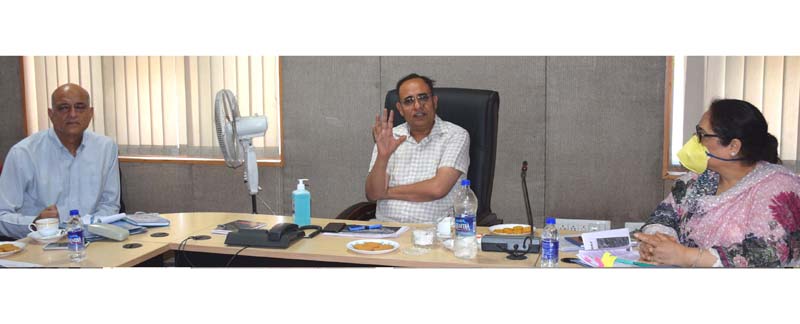 Principal Secretary PDD Rohit Kansal chairing a meeting at Jammu on Friday.