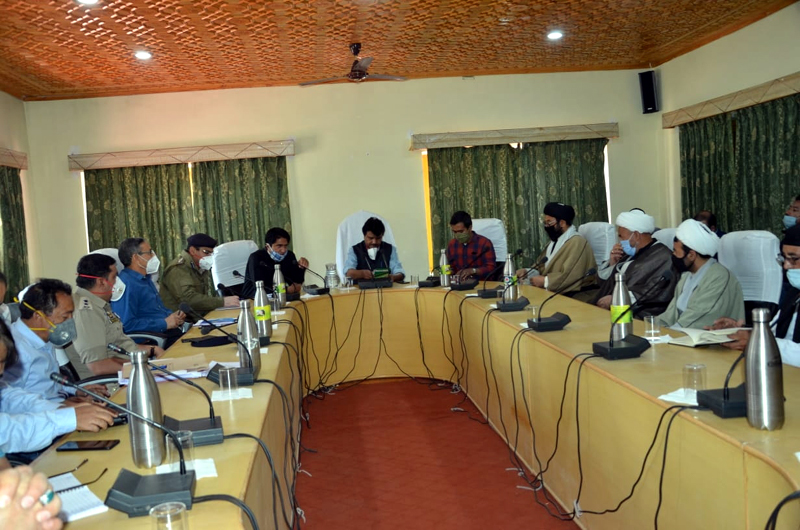 Executive Councilor for Health Muhammad Ali Chandan, District Magistrate/ Deputy Commissioner and Chief Executive Officer, LAHDC, Kargil Baseer ul Haq Choudhary, SSP Kargil Dr Vinod Kumar, Additional DC Kargil Tsering Motup, Additional SP Kargil Iftikhar Talib Choudhary, representatives of Anjuman e Jamiatul Ulema Isna Ashariya Kargil (AJUIAK), Imam Khomeini Memorial Trust (IKMT), Kargil, Anjuman e Ahle Sunnat Wal Jama’at Kargil, Anjuman e Sufia Noorbakshiya Kargil, Anjuman e Sahib Zaman Kargil and Buddhist Association Kargil, CMO Kargil Dr Muhammad Ibrahim Khan, Nodal Officer COVID Hospital Kargil and Senior Physician Specialist Dr Vilayat Ali, Assistant Commissioner Revenue Shabir Hussain, President Merchants’ Association Kargil besides other concerned officers attended the meeting.