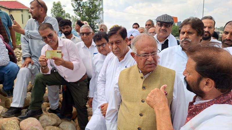 Karra alongwith working president Raman Bhalla, Ex-MP Ch Lal Singh, chief spokesperson Ravinder Sharma, Ex- MLA Balbir Singh, Ex- Minister Yash Pal Kundal, Indu Pawar Ex- MLA, DCC president Kathua, Pankaj Dogra, Ch Hussain Ali Wafa, Durga Dutt Ex-MLA, TS Tony, District president Samba Sanjeev Sharma, Babbal Gupta, Sanjeev Panda, Rajveer Singh and others on tour of Kalibadi, Kathua, Lakhanpur and Samba, Vijaypur, Ramgarh area of Samba to assess huge losses due to floods to the private property, crops, houses and public infrastructure.
