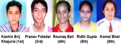 Kashin Brij Pranav Fotedar Rounaq Bali Ridhi Gupta Komal Bhat Khajuria (1st) (3rd) (4th) (5th) (5th) By Daily Excelsior - April 8, 2013 Share FacebookTwitterWhatsAppPinterestLinkedinCopy URLTelegramEmailTumblrReddItPrintKoo Kashin Brij Pranav Fotedar Rounaq Bali Ridhi Gupta Komal Bhat Khajuria (1st) (3rd) (4th) (5th) (5th) Follow our WhatsApp channel