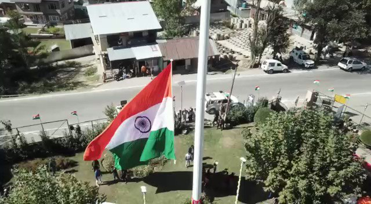 SRINAGAR, Oct 15: In a first of its kind initiative by the Jammu and Kashmir administration, a 108 ft tricolour was unfurled at Langat Historical Public Park. Inaugurating the tricolour, Divisional Commissioner Kashmir Pandurang K Pole said Kashmir is now changing and celebrating independence openly.