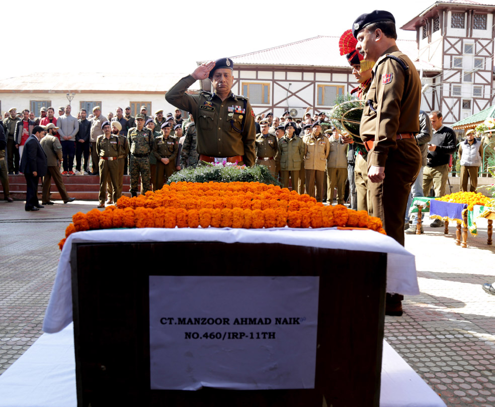 The DGP said Constable Manzoor, who is a resident of Uri in Baramulla, was an outstanding jawan of SOG. “We today paid respect to him and we have all the sympathies with the family,” he added.