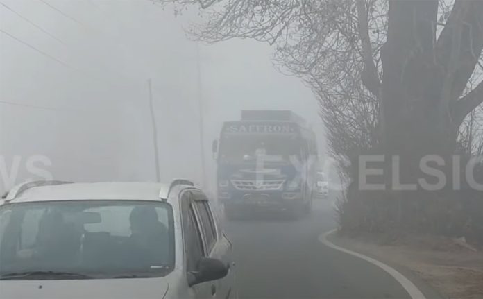 A dense layer of fog engulfed Srinagar and its adjoining areas and visibility in the city was hardly a few meters.