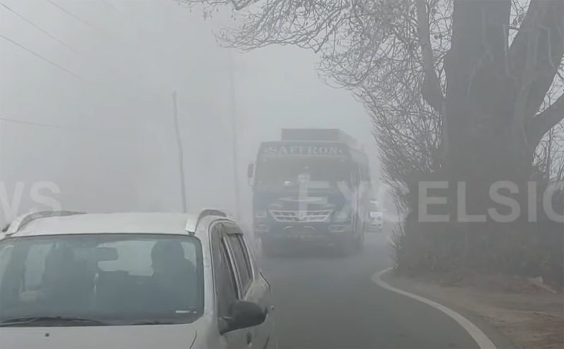 A dense layer of fog engulfed Srinagar and its adjoining areas and visibility in the city was hardly a few meters.