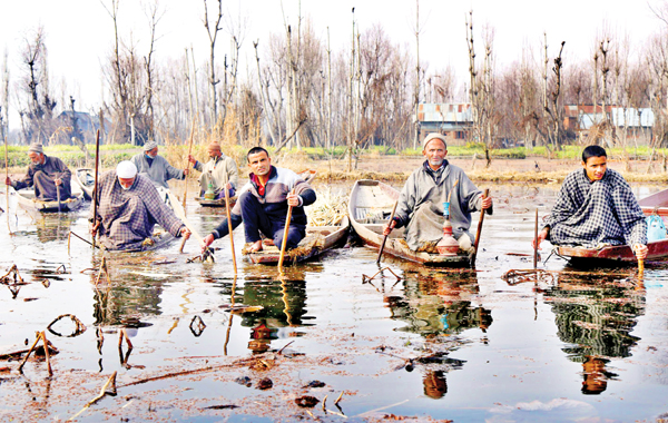 Kashmiri men on ‘Shikaras’ harvest Lotus roots (Nadru) on Dal lake in Srinagar. -Excelsior/Shakeel By Daily Excelsior - February 3, 2018 Share FacebookTwitterWhatsAppPinterestLinkedinCopy URLTelegramEmailTumblrReddItPrintKoo Kashmiri men on ‘Shikaras’ harvest Lotus roots (Nadru) on Dal lake in Srinagar. -Excelsior/Shakeel Kashmiri men on ‘Shikaras’ harvest Lotus roots (Nadru) on Dal lake in Srinagar. -Excelsior/Shakeel Follow our WhatsApp channel