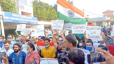 Kashmiri minorities holding protest at Jammu on Monday. By Daily Excelsior - October 12, 2021 Share FacebookTwitterWhatsAppPinterestLinkedinCopy URLTelegramEmailTumblrReddItPrintKoo Kashmiri minorities holding protest at Jammu on Monday. Kashmiri minorities holding protest at Jammu on Monday. Follow our WhatsApp channel