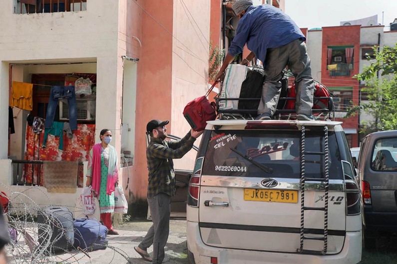 Kashmiri Pandit families return to Jagti migrant camp after the civilians killed by militants, in Jammu