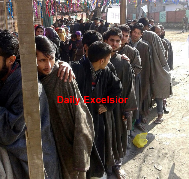 Kashmiri voters queue up to cast their vote at a polling station at Beerwah By Daily Excelsior - December 9, 2014 Share FacebookTwitterWhatsAppPinterestLinkedinCopy URLTelegramEmailTumblrReddItPrintKoo Follow our WhatsApp channel