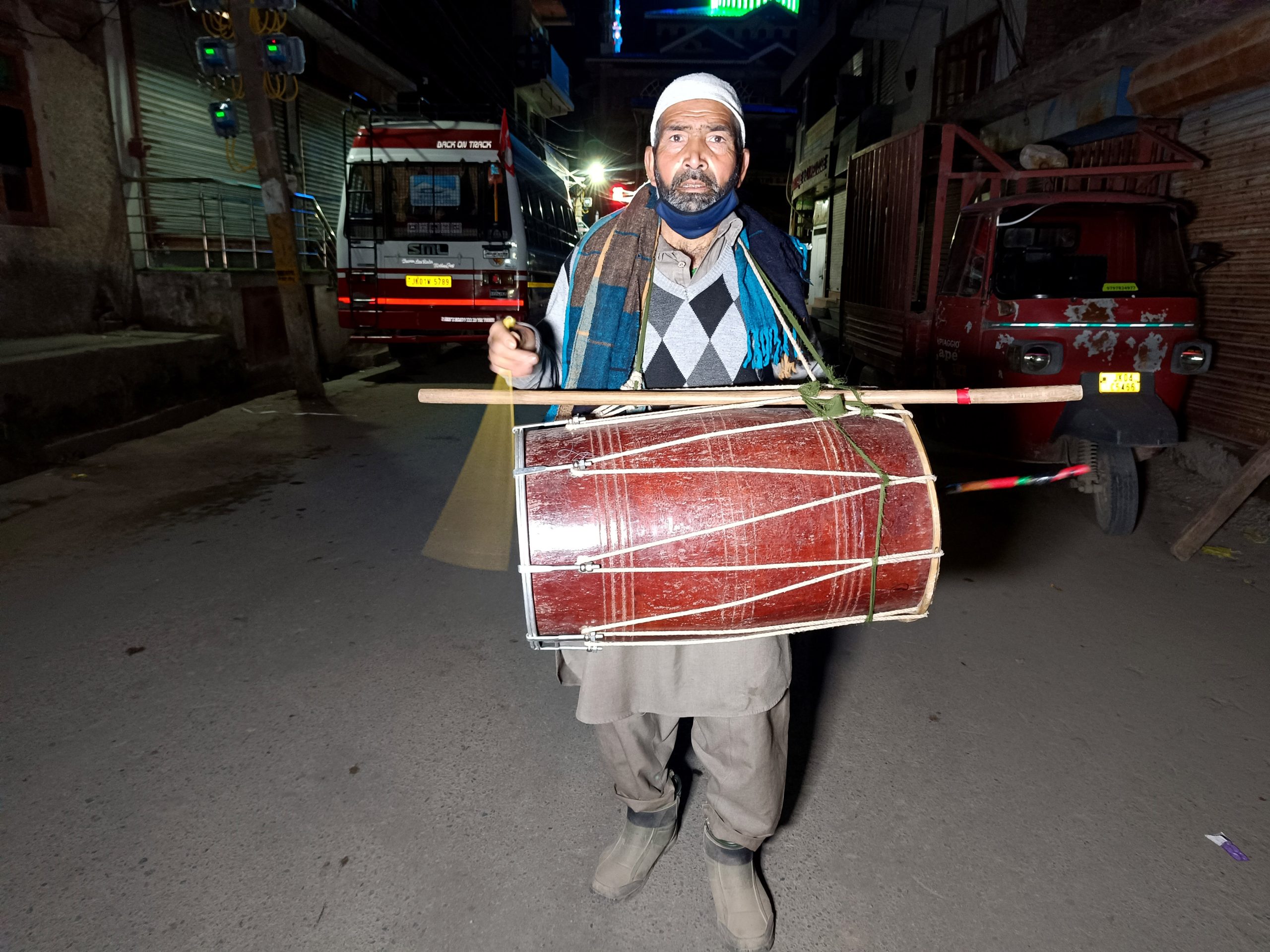 Mohammad Sidique, a seasoned Sehar Khan, has been awakening the faithful for the last 26 years. He travels 75 kilometers from his village in Bandipora to Srinagar for Ramadan drum beating.