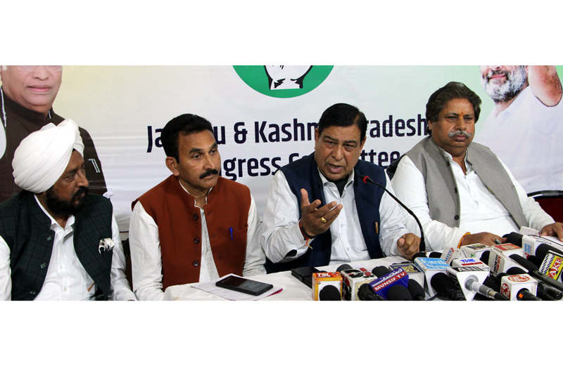 Addressing a press conference at Party office here today,JKPCC working president Raman Bhalla, chief spokesperson Ravinder Sharma, former Minister Dr Manohar Lal Sharma & senior leader T S Tony strongly condemned the LG Administration for not allowing the top leaders of Congress including Ch Lal Singh and Dr Manohar Lal Sharma from visiting their home segments to meet Billawar victims and for sharing the grief of victims and attending the last rites, while only BJP leaders were freely allowed to go.