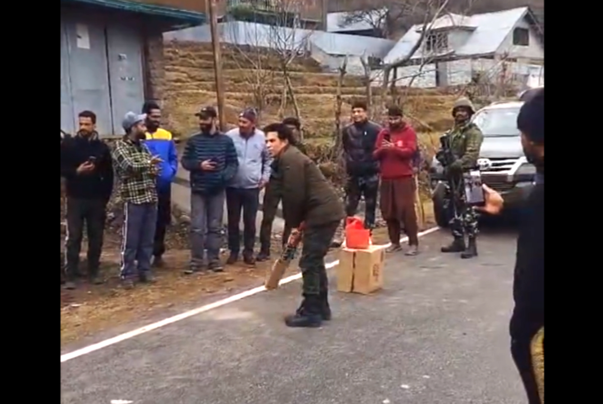 On his maiden trip to Jammu and Kashmir, Tendulkar got down from his SUV when he saw some young boys playing cricket on the road with a cardboard carton and an empty oil can as their stumps.