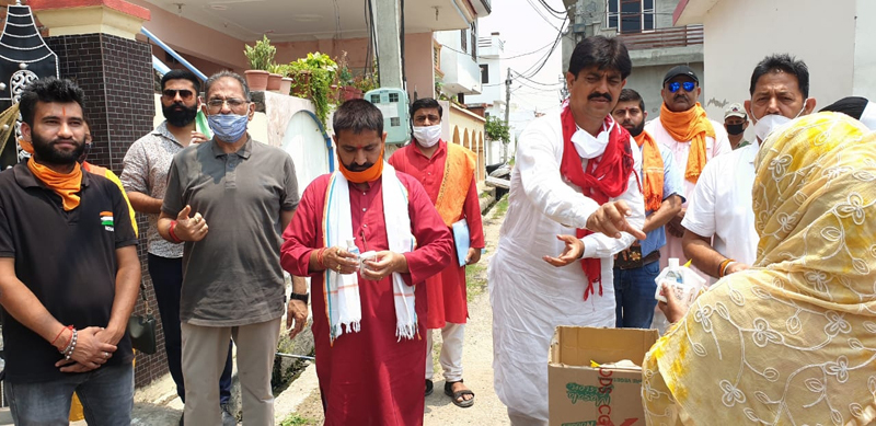 During tour Kavinder distributed 500 face masks, sanitizers, soaps and eatables to the needy people of the area wherein the distribution event was organized by BJP District Kissan Morcha.