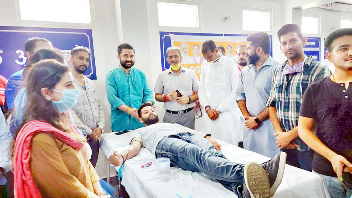 This camp was organized by Bharatiya Janata Yuva Morcha (BJYM) Gandhi Nagar Mandal, wherein 50 youth donated their blood under the leadership of Arun Dev Jamwal, BJYM Jammu Kashmir president, Anil Kumar BJYM president Jammu district and Monu Salathia, president BJYM Gandhi Nagar Mandal.
