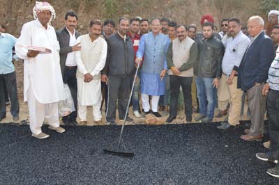 JAMMU, Nov 25: Speaker Legislative Assembly Kavinder Gupta today launched the blacktopping work on 5 km long Sunjwan-Chatta road link being constructed under the Pradhan Mantri Gram Sadak Yojana (PMGSY).
