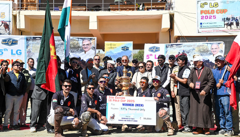 DRASS, Aug 28: Lieutenant Governor of Ladakh, Kavinder Gupta, reaffirmed the UT administration’s vision of transforming Ladakh into a centre of cultural heritage and sporting excellence. Speaking at the closing ceremony of the 5th LG Polo Cup at Goshan Horse Polo Stadium in Drass, the Lt Governor emphasized the revival of traditional sports like horse polo and the expansion of winter sports to empower youth and promote tourism.