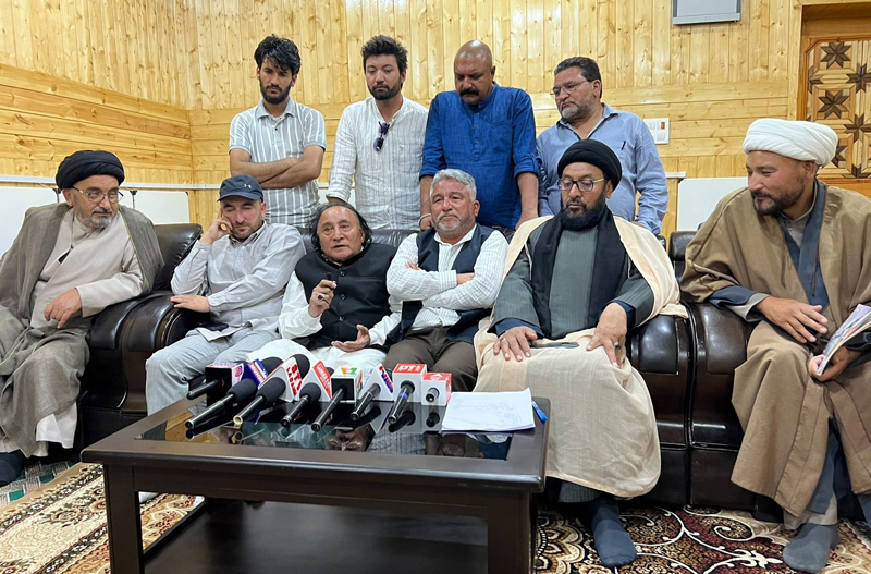 Leaders of Kargil Democratic Alliance talking to media persons at Kargil on Tuesday. — Excelsior/Basharat Ladakhi
