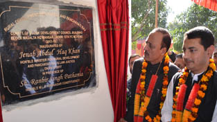 Minister for Rural Development, Abdul Haq Khan inaugurating Block Development Council complex at Mansar on Sunday.