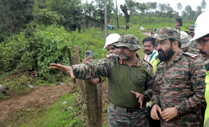 At the landslides-hit areas, Mohanlal, who was conferred the Lt Colonel post in the territorial army in 2009, was briefed about the search and rescue operations by the army officers and thereafter, he interacted with mediapersons.