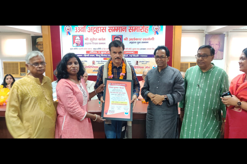 This honour was conferred by Medium Literary Institute and Yuva Utkarsh Literary Forum Delhi in the 33rd Attahaas Samman Ceremony, organized on July 13 at Hindi Bhawan, New Delhi.