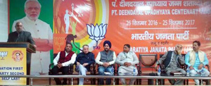 BJP State general secretaries Dr. Narinder Singh and Harinder Gupta, Jammu West district president Ayodhya Gupta and Jammu district president Baldev Singh Billawaria also shared dais.