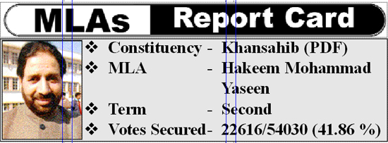 However, some residents, mostly elders, were all praise for their representative. They said that Khansahib would have been the most backward in development had it not been represented by Hakeem Yaseen.