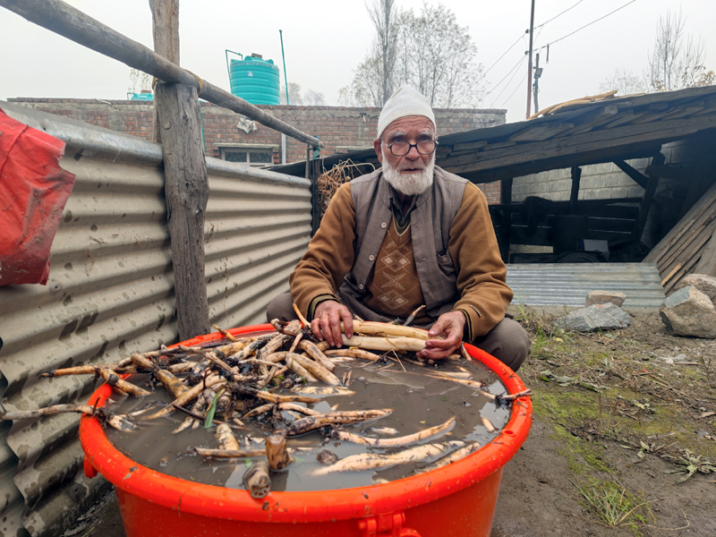 Srinagar, Dec 2: An elderly man from Khonmoh area has, for the first time, cultivated lotus stem (Nadru) away from Dal Lake after converting his paddy field into a full-fledged Nadru farm.