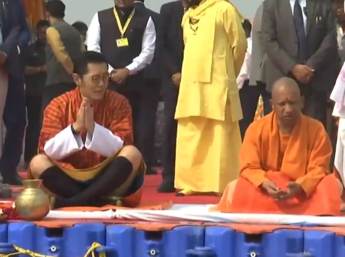 MAHAKUMBH NAGAR, Feb 4: Bhutan King Jigme Khesar Namgyel Wangchuck visited the Maha Kumbh on Tuesday and took a holy dip at the Triveni Sangam.