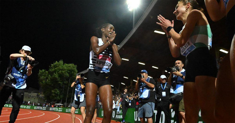 She became the first woman to better 3 minutes, 50 seconds when the Kenyan won in 3:49.11 in the Diamond League meet on Friday.