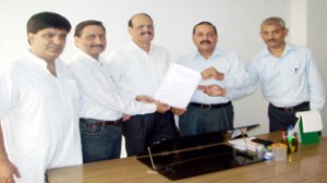JAMMU, Oct 5: A civil society delegation comprising noted intellectual and columnist Dr. Jitendra Singh, Human Rights activists Ashwani Chrangoo and Civil Rights activists Dineshwar Jamwal and Virender Raina, today called on Justic R.C. Gandhi in his office and handed him over an interim report on the Kishtwar violence of August 9.