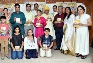JAMMU, June 14: MLCs Ashok Khajuria and Ajay Bharti released ‘Shreemad Bhagwad Gopinath Ashtotar Shatnam Stotram’ audio CD of Kalpana Kala Kendra Institute of Music and Dance (KKKIMD) in an impressive and well attended function at KL Saigal Hall, Abhinav Theatre, here today.
