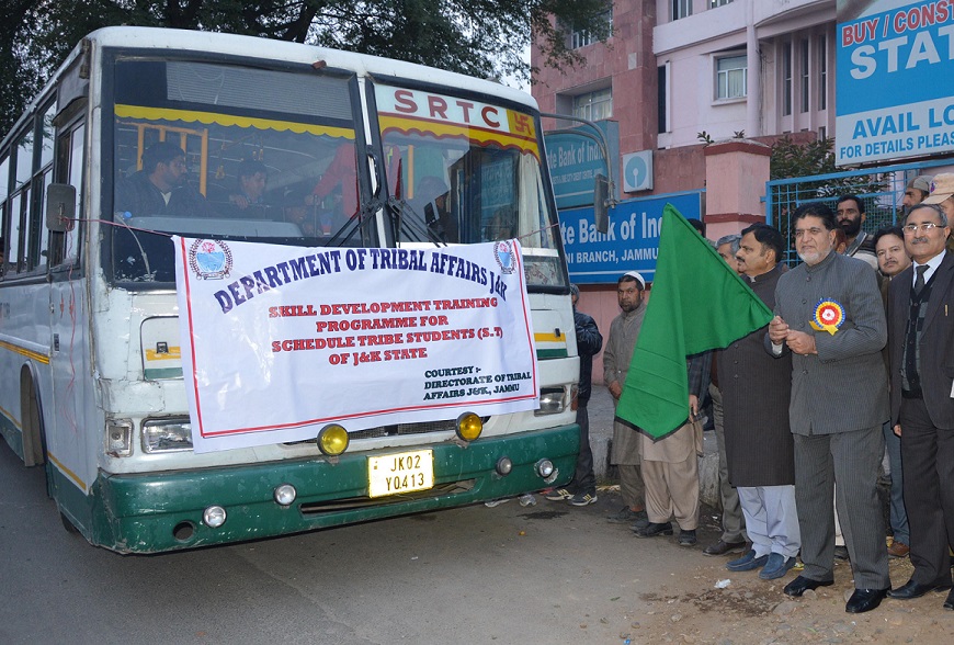 JAMMU: Minister for Sheep and Animal Husbandry and Fisheries, Abdul Ghani Kohli today flagged off first batch of skill development training programme for Schedule Tribe (ST) students of the state for Panchkula, Haryana.