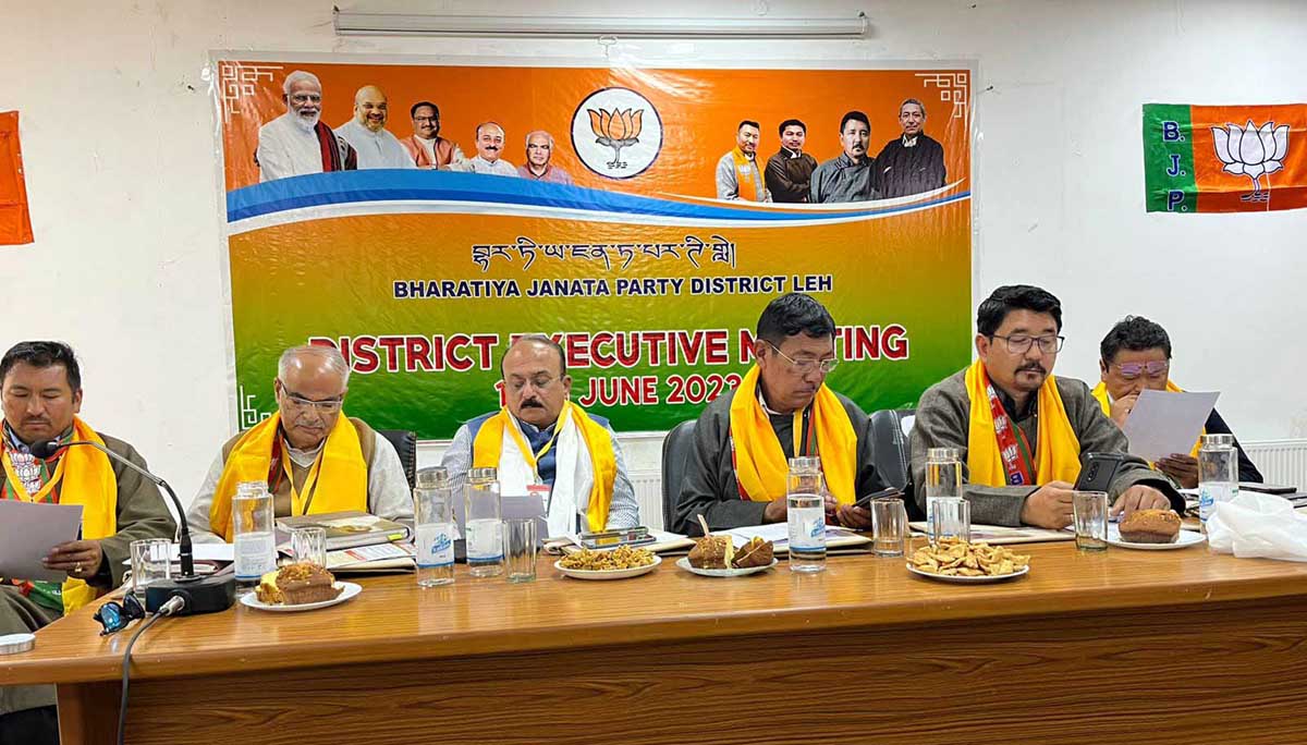 BJP president Ladakh Phuntsog Stanzin, district president, Leh Tashi Gyalson Khachu, CEC LAHDC, Leh Tashi Gyaltson, Dy Chairman LAHDC LEH, Tsering Angchuk, Prabhari BJP Leh and Ex CEC, Gyal P Wangyal, executive councillors, councilors, BDCs, president BIMM and team, district executive team, Mandal presidents and team also attended the meeting.