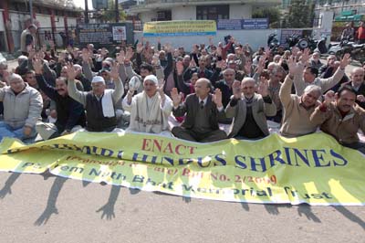 The protestors said that the community will not rest till Bill 2 of 2009 for the protection, preservation and maintenance of the temples and shrines of the Hindus of Kashmir is passed. The Bill which is to crate a constitutional mechanism for the collective management of temples and shrines on the principles of democracy and transparency is pending with the State Legislature for last five years, they added.