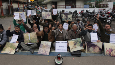 JAMMU, Dec 28:A protest demonstration was also held by Panun Kashmir led by Ashwani Chrungoo in front of Press Club here today in commemoration of Homeland Day.