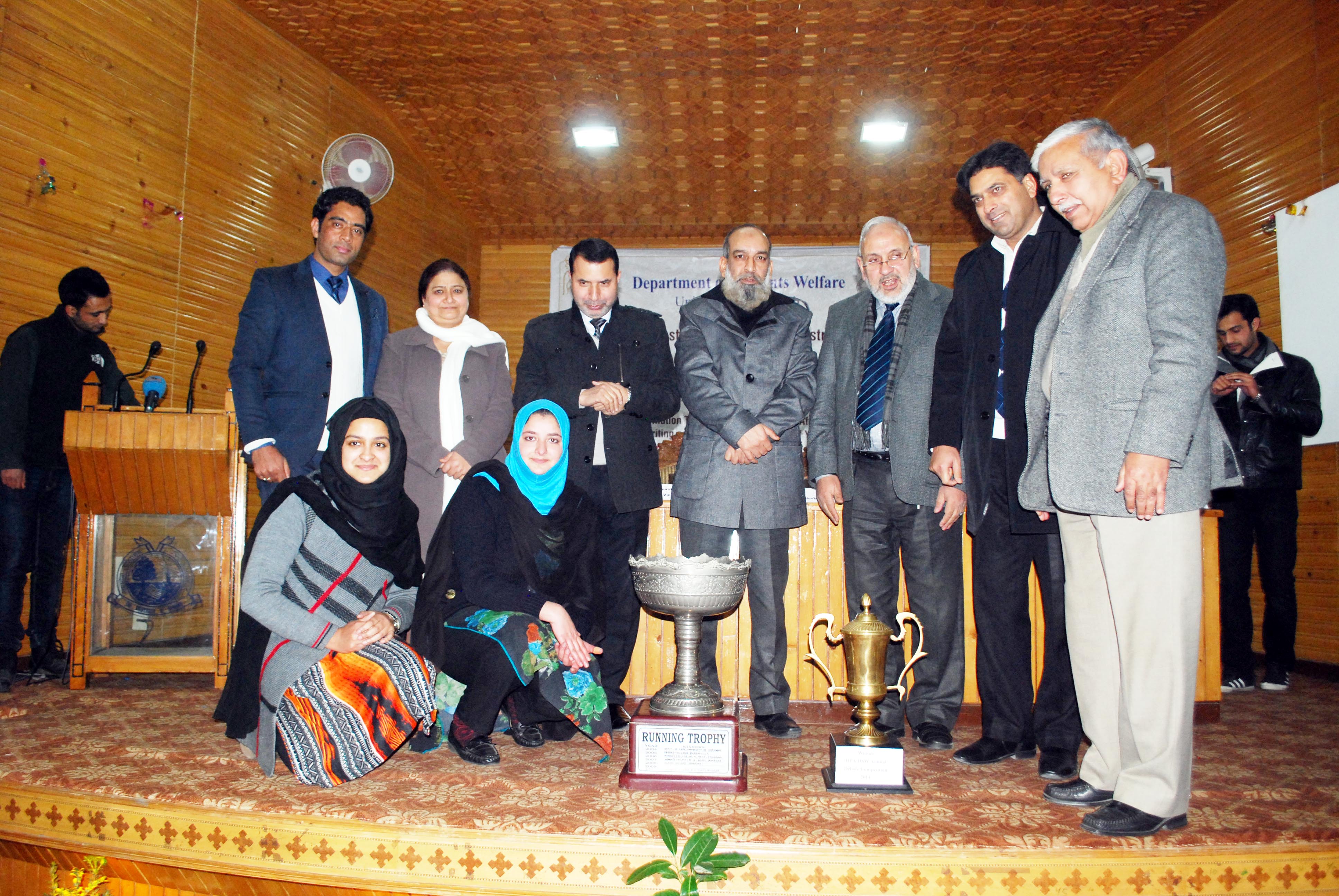 The debating team from Department of Social Work, KU which included Tabinda Wani and Sadaf Zehra won the title for KU where as Arbeena Hamid from Dept of Law, KU won the first position and Zubair Ahmad from Business School KU and Ehsan-ul-lah from Dept of Economics (KU) secured the second and third position in the competition.
