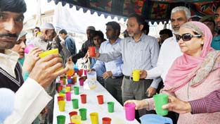 While serving juice to the devotees the VC said: “It is a part of our responsibility towards society and the University has the tradition to organize such camps every year on the occasion of Shab-e-Meraj”.